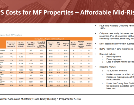 By Adam Pagnucco. Two years ago, Montgomery County passed legislation establishing building energy performance standards. Last year, the county passed legislation establishing rent