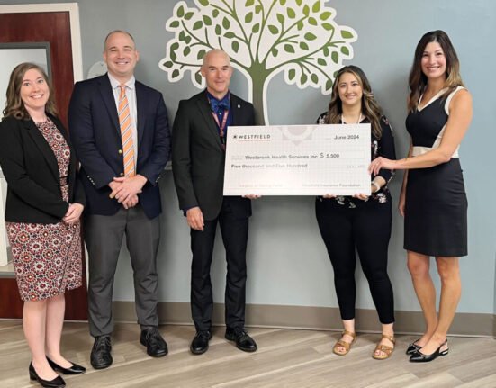 Westbrook Health Services has received a donation of $5,500 from Waters Fanta Insurance Agency. Pictured, from left, are Rebecca Knotts,