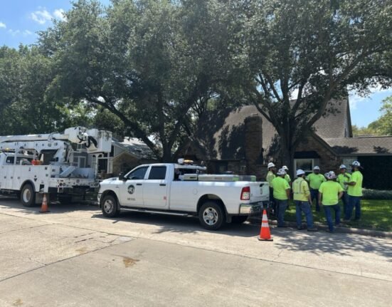 Celeste Schurman CenterPoint Energy workers show up in the Nottingham Country neighborhood in Katy. On Sunday afternoon, more than 385,000 CenterPoint Energy customers