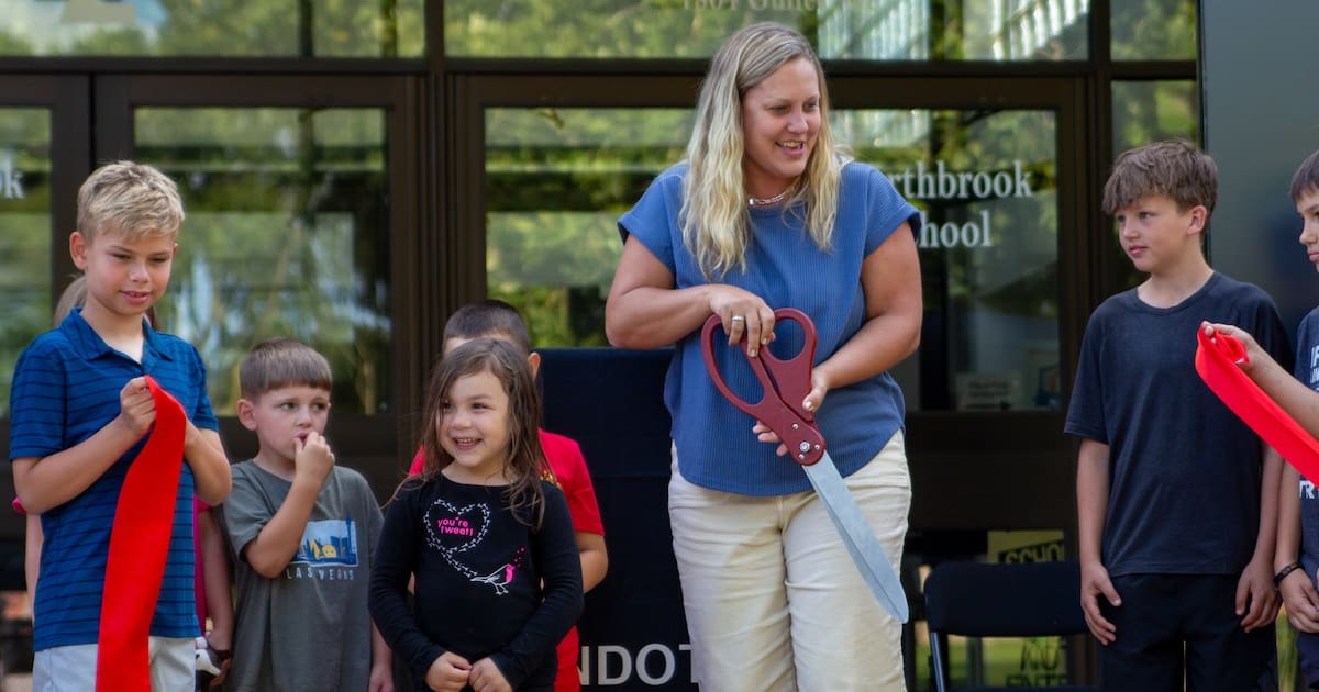 Thursday, district officials cut a ceremonial ribbon outside Northbrook School, one of the three school buildings now equipped with solar panels. The panels are installed on the rooftops where they can draw energy-saving sunlight without marring the school facades.