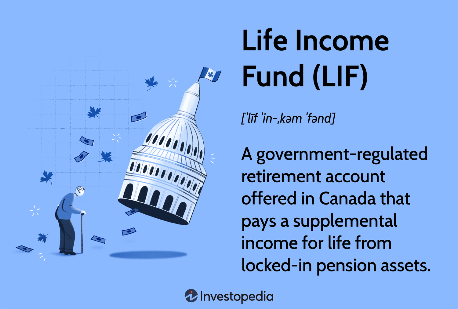 A life income fund (LIF) is a type of registered retirement income fund (RRIF) in Canada that can be used to hold locked-in retirement accounts (LIRAs) and other assets for retirement income.