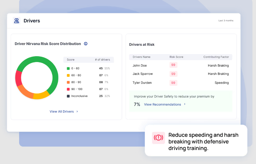 Nirvana’s platform provides real-time insights on various aspects of a fleet’s operations, with telematics capturing data on driver behavior, including harsh braking, acceleration and cornering, in order to build up a comprehensive picture of each one’s driving patterns. Meanwhile, the safety intelligence component integrates this telematics data with Federal Motor Carrier Safety Administration guidelines to create personalized insights for each driver and reduce risk.