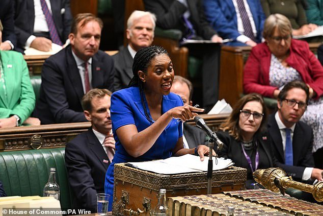 Kemi Badenoch (pictured) has been accused failing to question Angela Rayner’s embarrassing tax admission in the Commons today