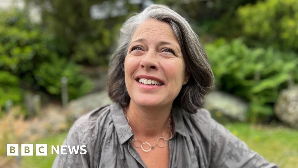 John Fernandez/BBC A woman wearing a grey shirt, with a necklace of interlacing circles looks up at the camera.John Fernandez/BBC